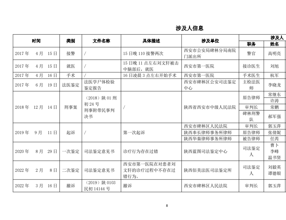 核心事实:我是刘聚魁,2017年4月15日,我儿刘文轩留学归国次日,无辜遭多人殴打致重度脑损伤。后在西安市第一医院救治过程中,因延误手术,无ICU监护,术后护理失当致窒息等一系列过错,最终不幸离世。